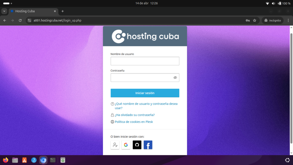 1. Accede a tu panel de Hosting Cuba
