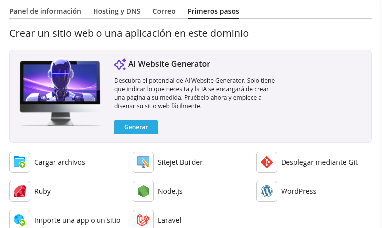 La combinación de hosting + inteligencia artificial está cambiando la forma en que se crean las páginas web.