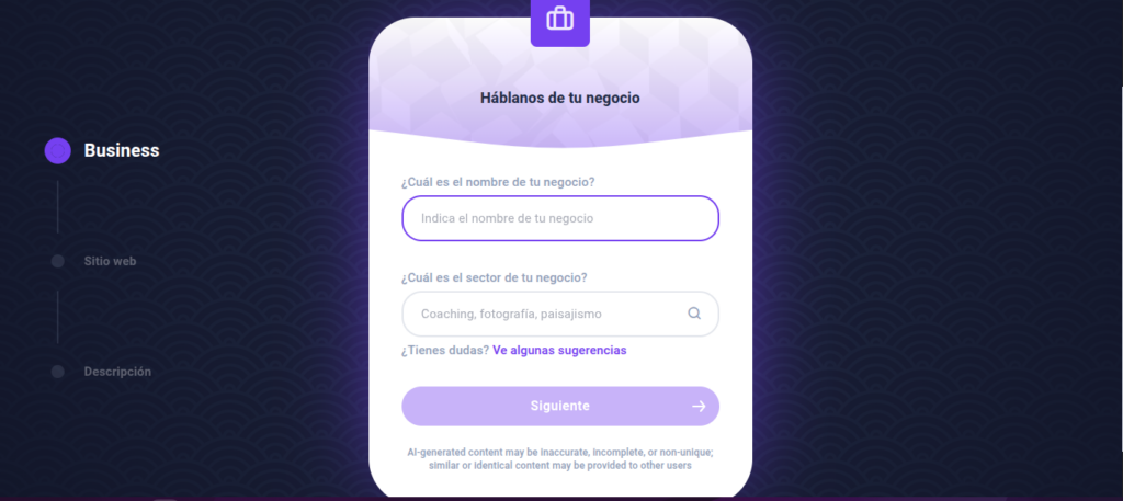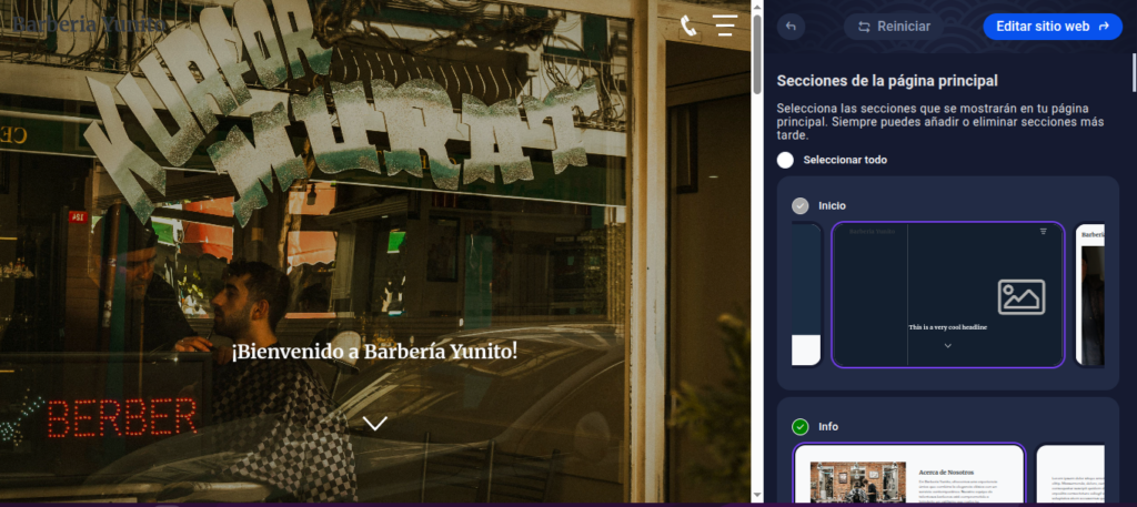 En pocos segundos, la IA generará tu sitio completo con: